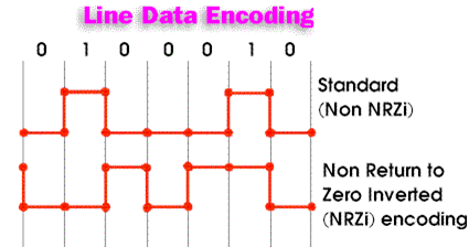 NRZI 編碼(Non Return Zero Inverted Code),即反向不歸零編碼。 其實(shí)NRZI編碼方式非常的簡單,即信號電平翻轉(zhuǎn)表示0,信號電平不變表示1;例如想要表示00100010(......